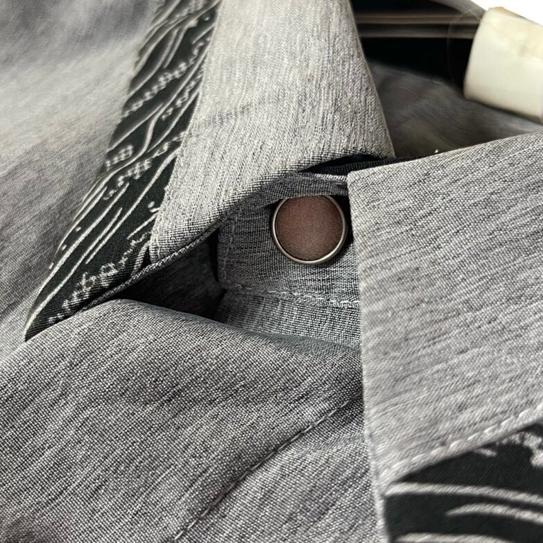 『美品 VINTAGE Roger Kent switching art design metal button big silhouette over size fly front shirt』USED 古着 ヴィンテージ 切替 アート デッサン メタル ボタン ビッグ シルエット オーバー サイズ 比翼 前立て シャツ