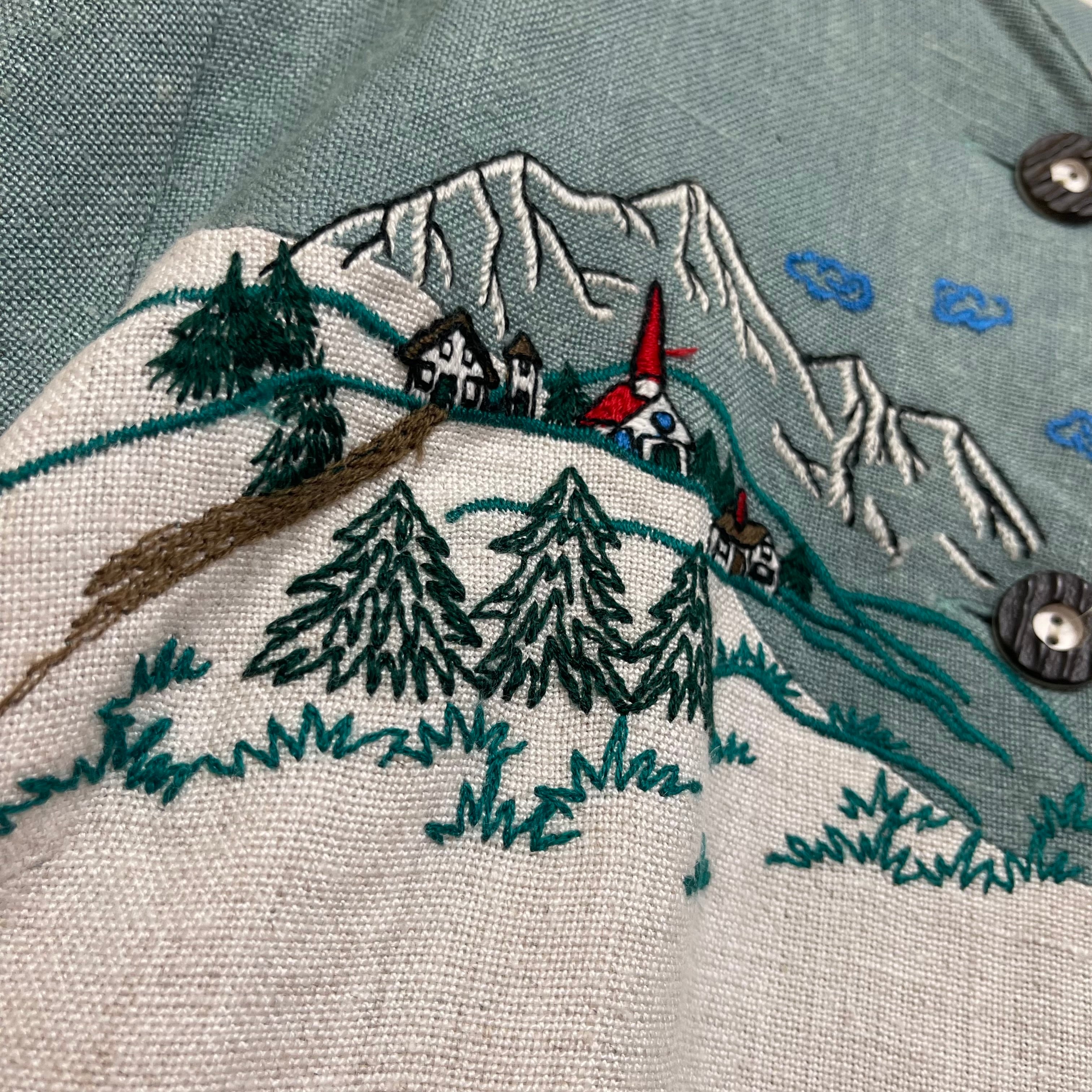 アルプスの山々や羊などの景色が刺繍された可愛いチロルジャケットです。