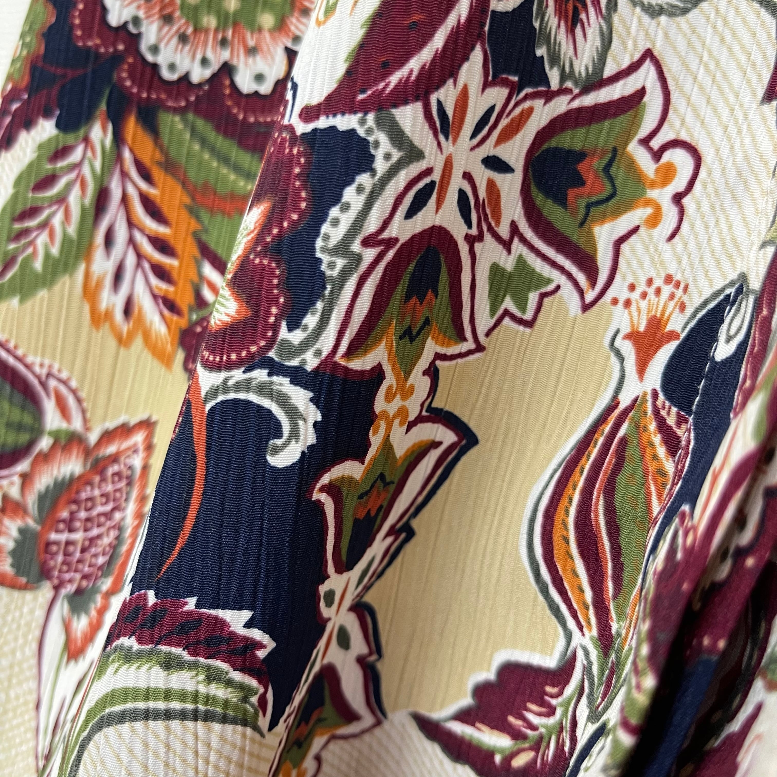 全体にプリントされた花柄が目を引く総柄シャツです。
