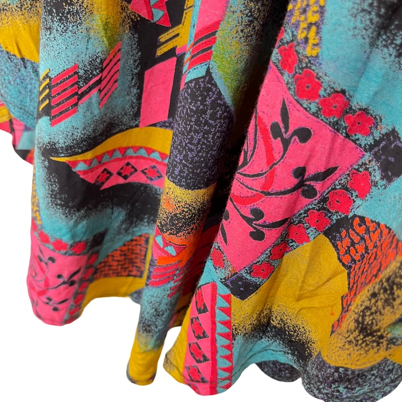 カラフルなアートフラワー柄が目を引くラウンドカラーシャツです。