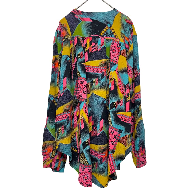 『美品 GIORDANO flower art design rayon100% big silhouette over size round collar shirt』USED 古着 ヴィンテージ フラワー 花 アート デッサン 総柄 レーヨン100% ビッグ シルエット オーバー サイズ ラウンド カラー シャツ