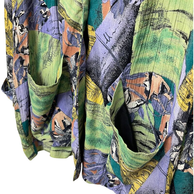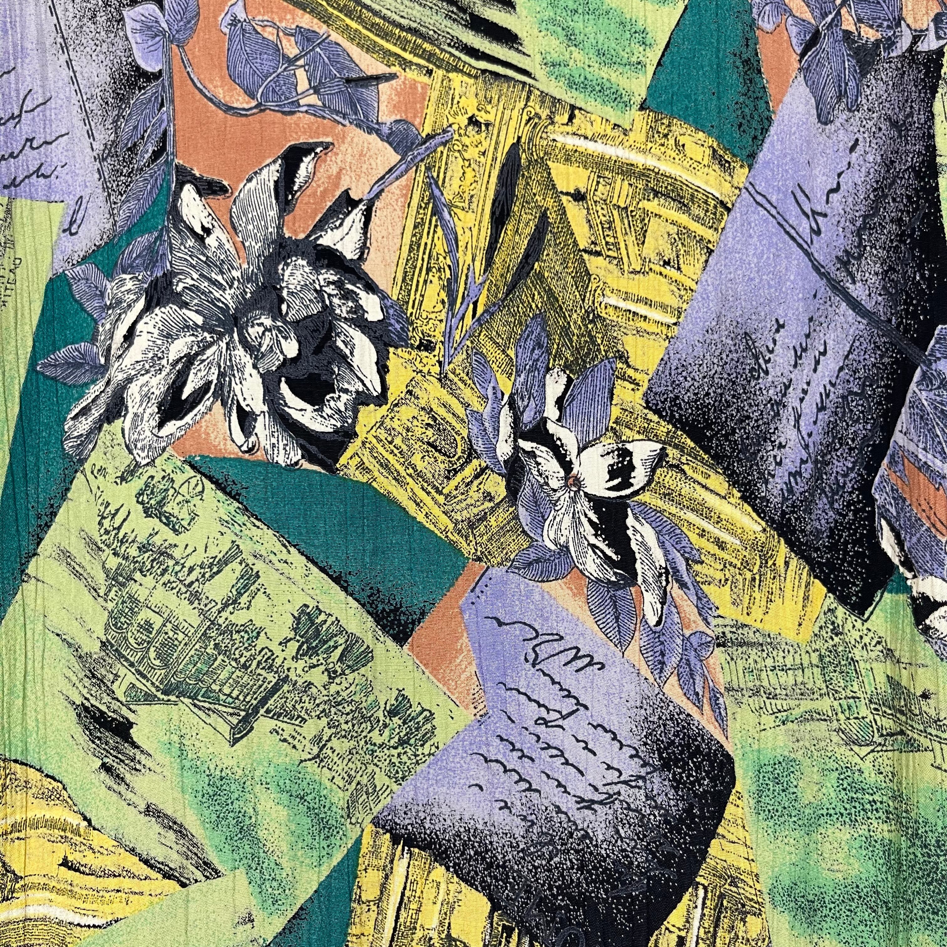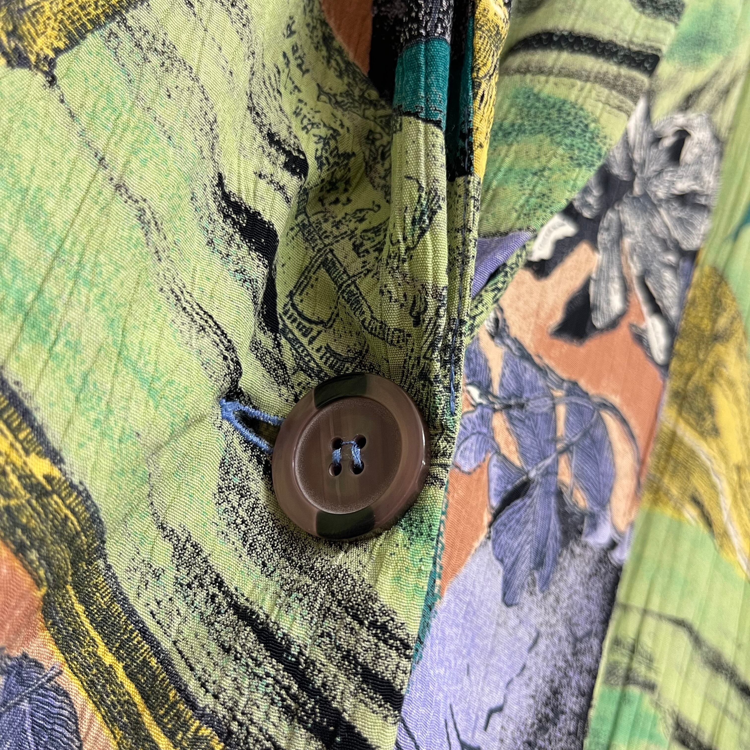 『美品 VINTAGE Flower art design rayon100% big silhouette over size tailored shirt jacket』USED 古着 ヴィンテージ フラワー アート デッサン ブロック レーヨン100% ビッグ シルエット オーバー サイズ テーラード シャツ ジャケット